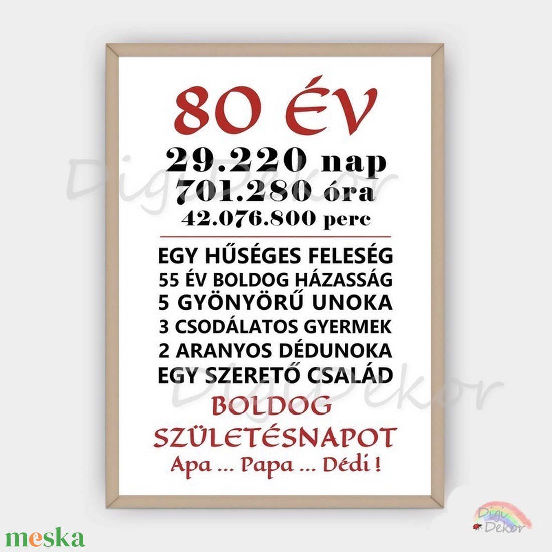 Fekete-fehér-piros szülinapi tábla, születésnapi falikép nagypapának, dédipapának. Személyre szabott ajándék férfiaknak.