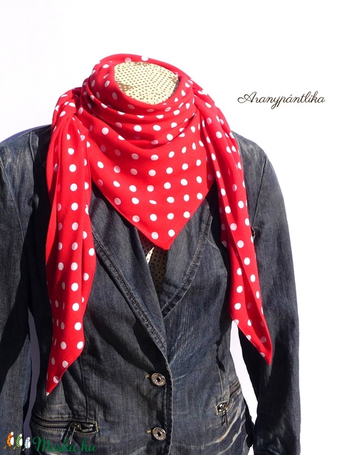 AKCIÓS: DOLLY piros-fehér pöttyös pamut kendő