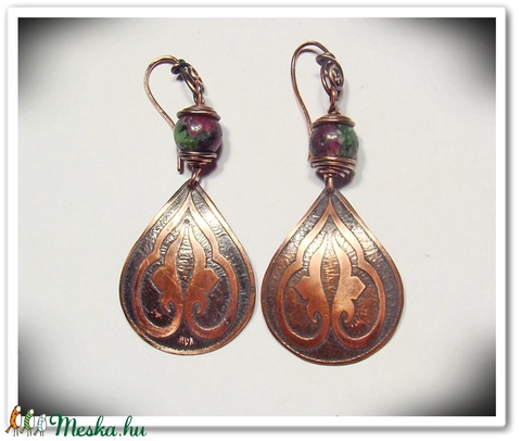 Patinázott vörösréz fülbevaló rubin-zoizittel