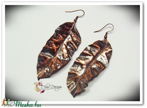 Vörösréz falevél fülbevaló
