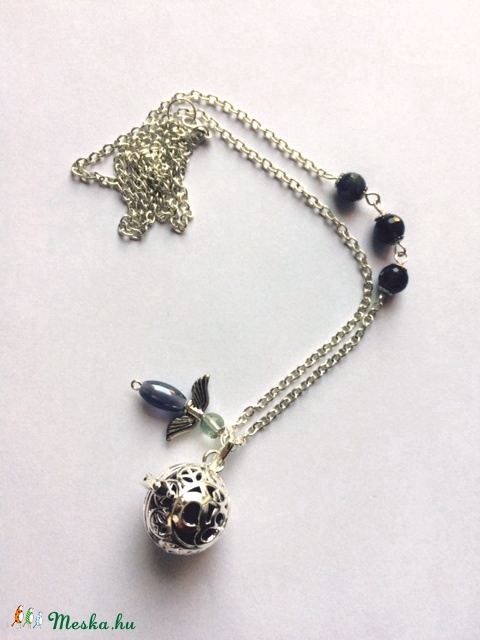 Angyalhívó csengő OM medállal, ametiszt féldrágakövekkel