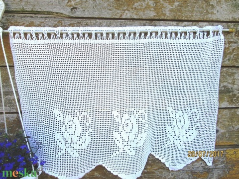 Táncoló rózsák-Horgolt "Shabby" vitrázs fehér függöny.