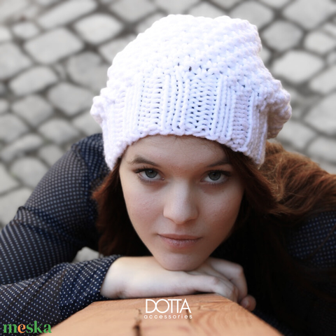 Kincső kötött sapka - vastga meleg gyapjús sapi - fehér színben