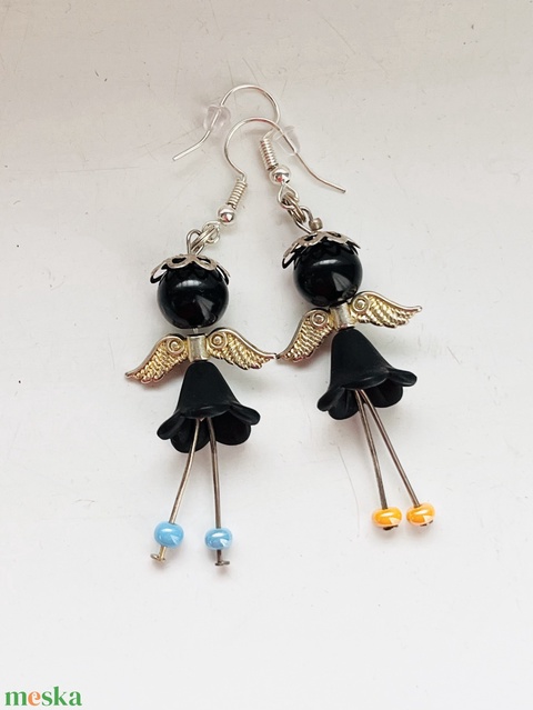 Fekete angyalka színesben fülbevalók