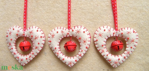 Szív alakú karácsonyfa dísz csörgővel