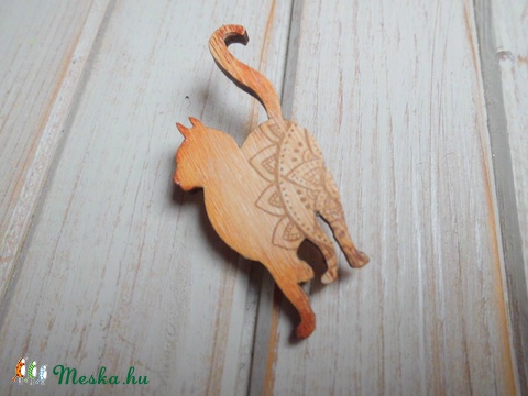 Indiai mintájú cica,macska fa bross, kitűző