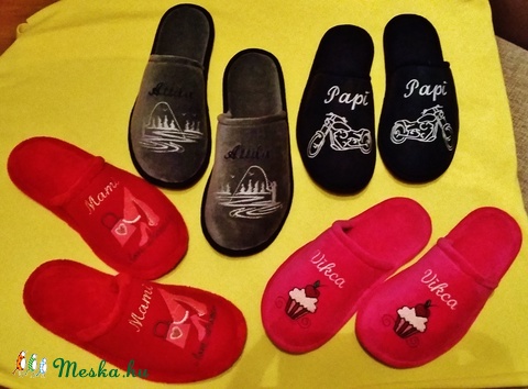 Vidám, meleg, hímzett szobapapucs téli estékre,