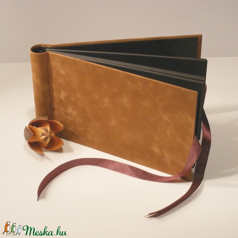 Fotóalbum bársony borítóval, spirál kötés, hagyományos album, barna
