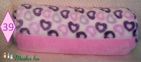 40 cm hosszú 13 cm átmérővel, polisztirol gyönggyel töltve, pihe-puha anyagokból, /mint a babaplédek/.