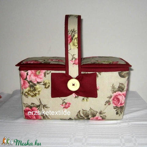 Varró- vagy kézimunka kosár bézs alapon rózsás