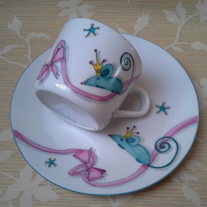 Egérkés mintával megfestettt porcelán gyermek étkészlet