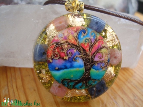Orgonit "Életfa" medál - Rodokrozittal és Zafírral