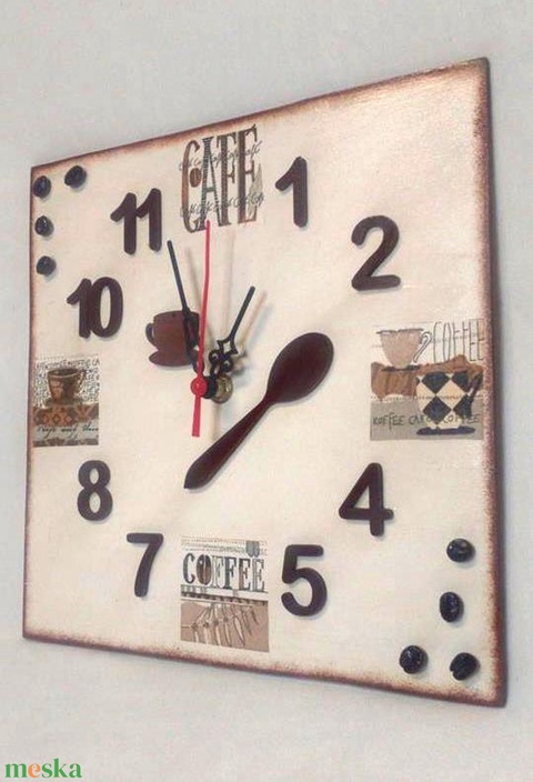 - Anyaga: fa, akril, műanyag mutató, kávészem, szalvéta
