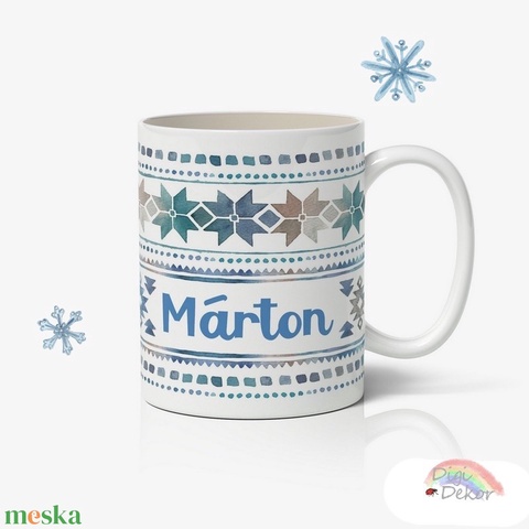 Névre szóló karácsonyi bögre férfiaknak, norvégmintával, téli színekkel.