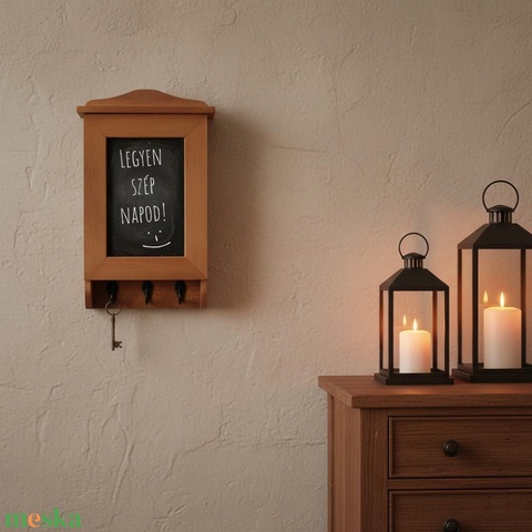 Barna Krétával írható fa kulcstartó szekrény és üzenőtábla
