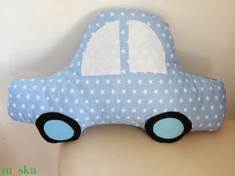 Autó formájú párna - Babakék / Fehér - Autós díszpárna - Autó párna - Textiljáték - Textilfigura
