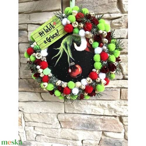 Grincs ajtódísz -itt lakik a grincs felirattal-Grincs kézzel