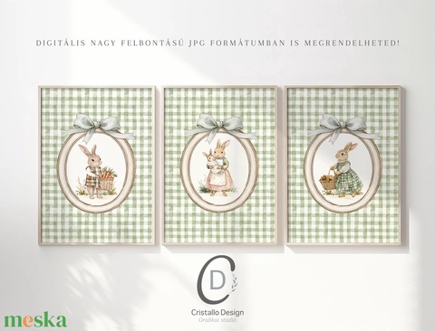 Nyuszi illusztrációs kép, vintage poszter, húsvéti falikép szett 3 db