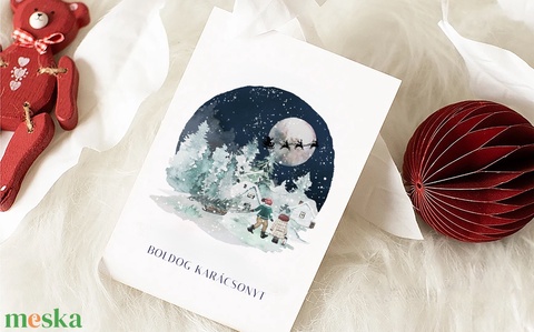 Karácsonyi képeslap, téli üdvözlőlap, Mikulás ajándékkísérő