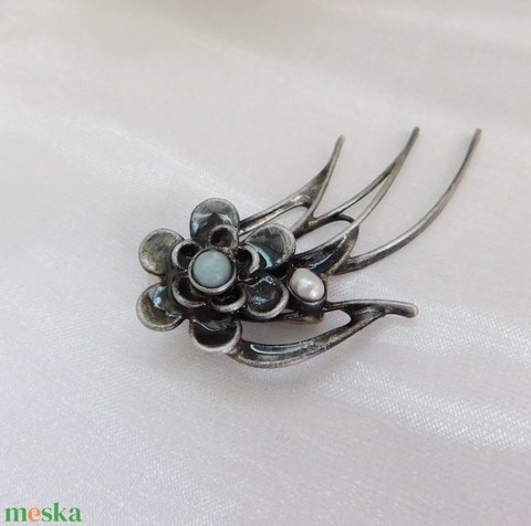 - Anyag/Összetevő rézdrót, ólommentes ón, felületkezelő anyagok, lakk, bross alap, amazonit, folyami gyöngy, gyöngy