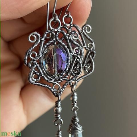 - Anyaga: ezüstözött rézdrót, kristálygyöngy, üveggyöngy, fém gyöngy