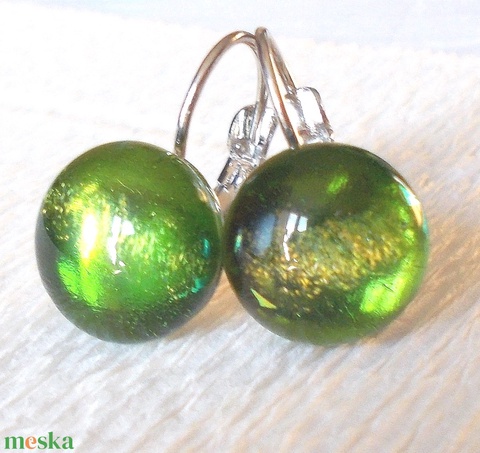 Zöld-arany üveg fülbevaló , ajándék ballagásra, névnapra, születésnapra.