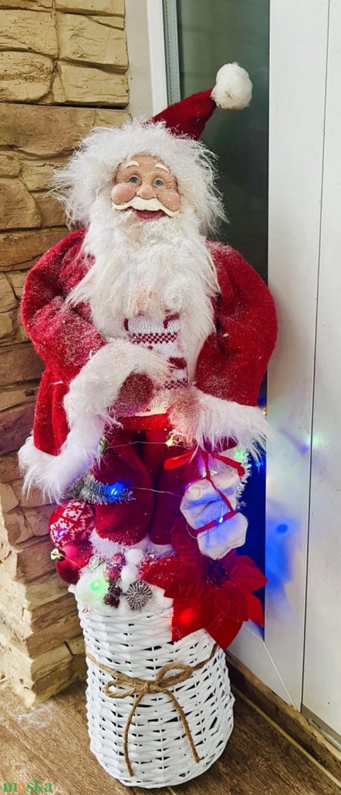 Vendégváró LED dekoráció kb. 70 cm – vessző kosárban Mikulással Fontos: Ez a vendégváró dekoráció mérete miatt nem rende