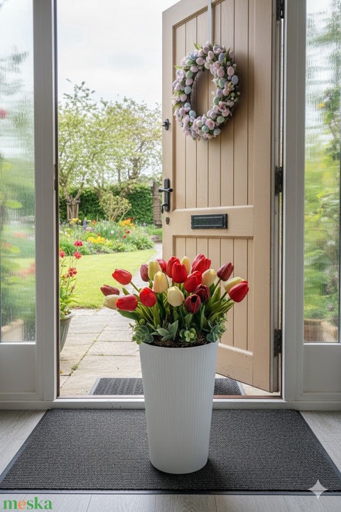 Vendégváró tulipános kaspós dísz – 58 cm (kaspóval együtt)