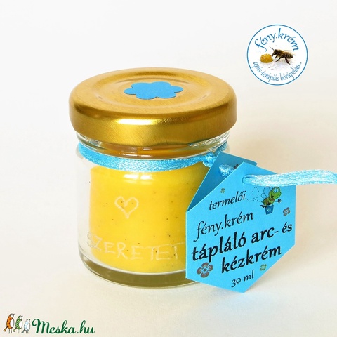 a kis üvegekbe 30 ml krémet teszek, s a címke mögött bújik a saját kezűleg gravírozott "szeretet" szó, egy szívecskével :)