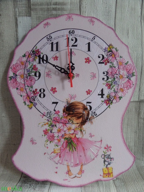- Anyaga: falap, alapozófesték, akrilfesték, szalvéta, dekupázsragasztó, lakk, kontúrozó, óraszerkezet
