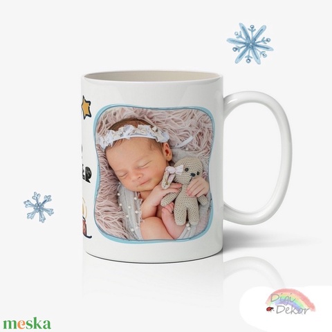 Fényképes karácsonyi bögre évszámmal, gyertyákkal és csillagokkal. 2 fotóval.