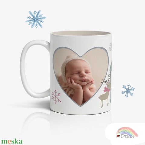 Fényképes, rénszarvasos bögre, egyedi karácsonyi ajándék. Személyre szabott bögre 2 fotóval.