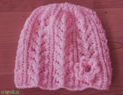 Rózsaszín kötött kislány sapka
