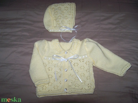 Kötött krém színű baba kardigán és sapi
