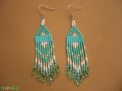 türkiz-fehér-ezüst lógós gyöngy fülbevalók, ajándék