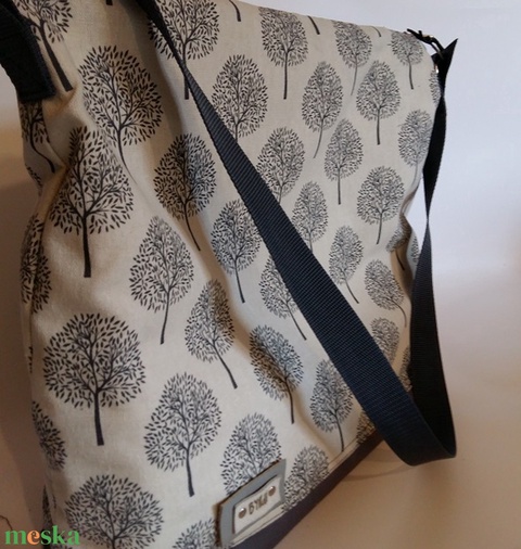 Vászontáska szürke famintás nagyméretű táska, pelenkázó táska