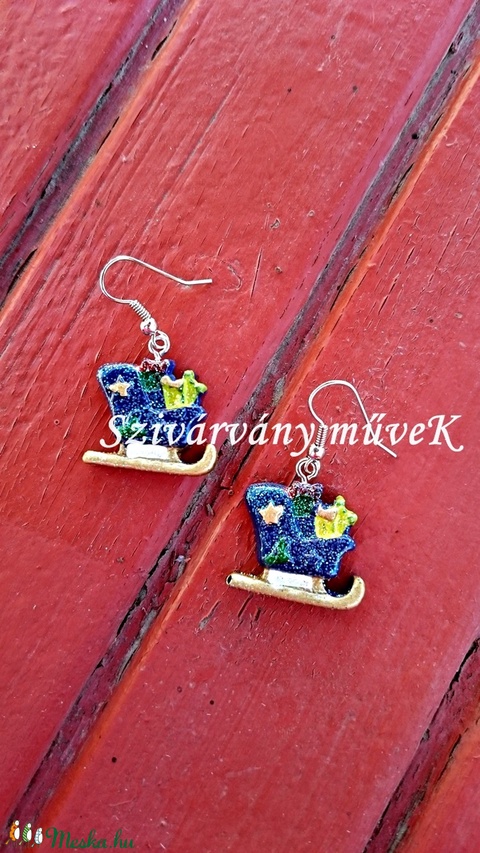 Mikulás szán, fülbevalón