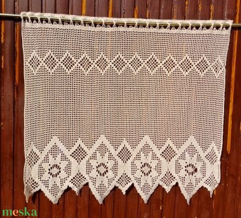 Pókhálós őszi virágok-Antik hatású,len horgolt virágos-absztrak mintás függöny