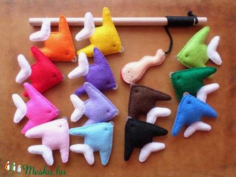 Szivárvány horgászjáték, mágneses, filc vitorláshalak, 14 darabos készlet