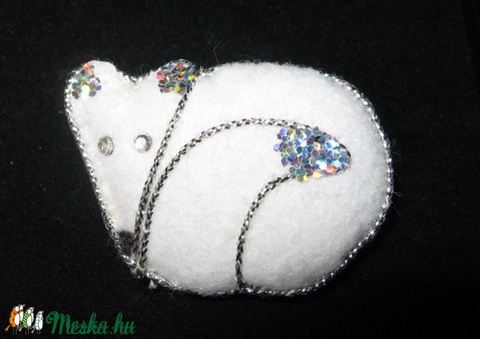 - Anyag/Összetevő filc, ezüstcsillám, ezüstzsinór, strasszkő