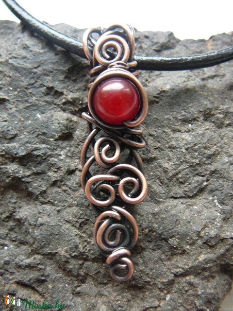 vörösréz, bőr, 8mm-es jáde gyöngy