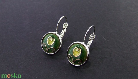 Tűzzománc fülbevaló (kicsi) - tulipános zöld-sárga