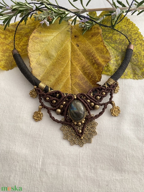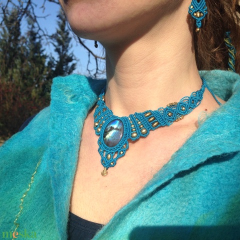 - Anyaga: makramé fonal, labradorit, réz gyöngyök