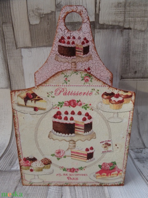 - Anyaga: fa alap, akrilfesték, szalvéta, dekupázsragasztó, lakk, egyfázisú repesztőlakk