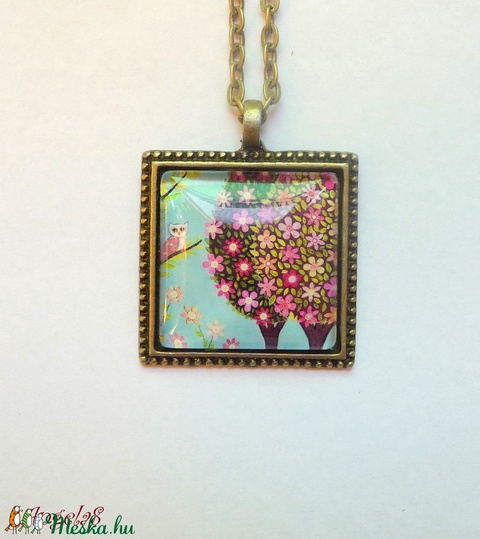 Tavaszias virágos-fás-baglyos nyaklánc