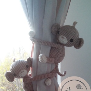 Majom függönyelkötő - horgolt maki figura babaváró/ babalátogató ajándék (AD01)