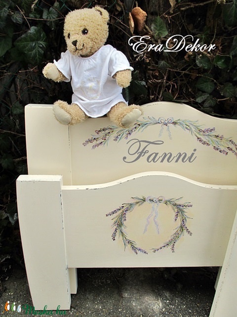 gyerekszoba bútorok, romantikus antikolt festéssel készült fa ajándéktárgyak a provence-i stílus jegyében