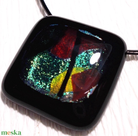 - Anyaga: ékszerüveg, ékszer szerelék, bőrszál, dichroic