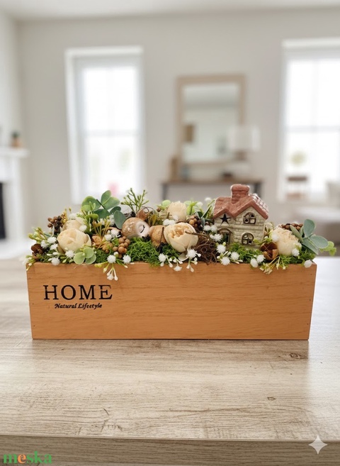 barack színű fa ládás asztaldísz – Bambi és házikó