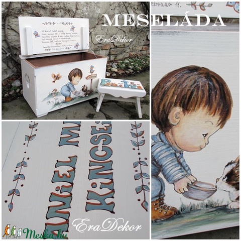 gyerekszoba bútorok, romantikus antikolt festéssel készült fa ajándéktárgyak a provence-i stílus jegyében